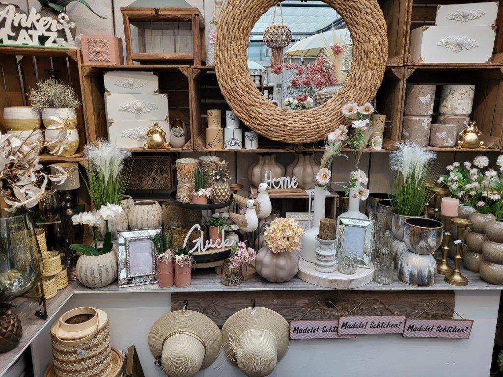 Mit jedem Blütenwechsel finden Sie neue wohlduftende Waren in unserer Produktpalette. Das wunderschöne Ambiente lädt ganzjährig zum Stöbern und Dekorieren ein.